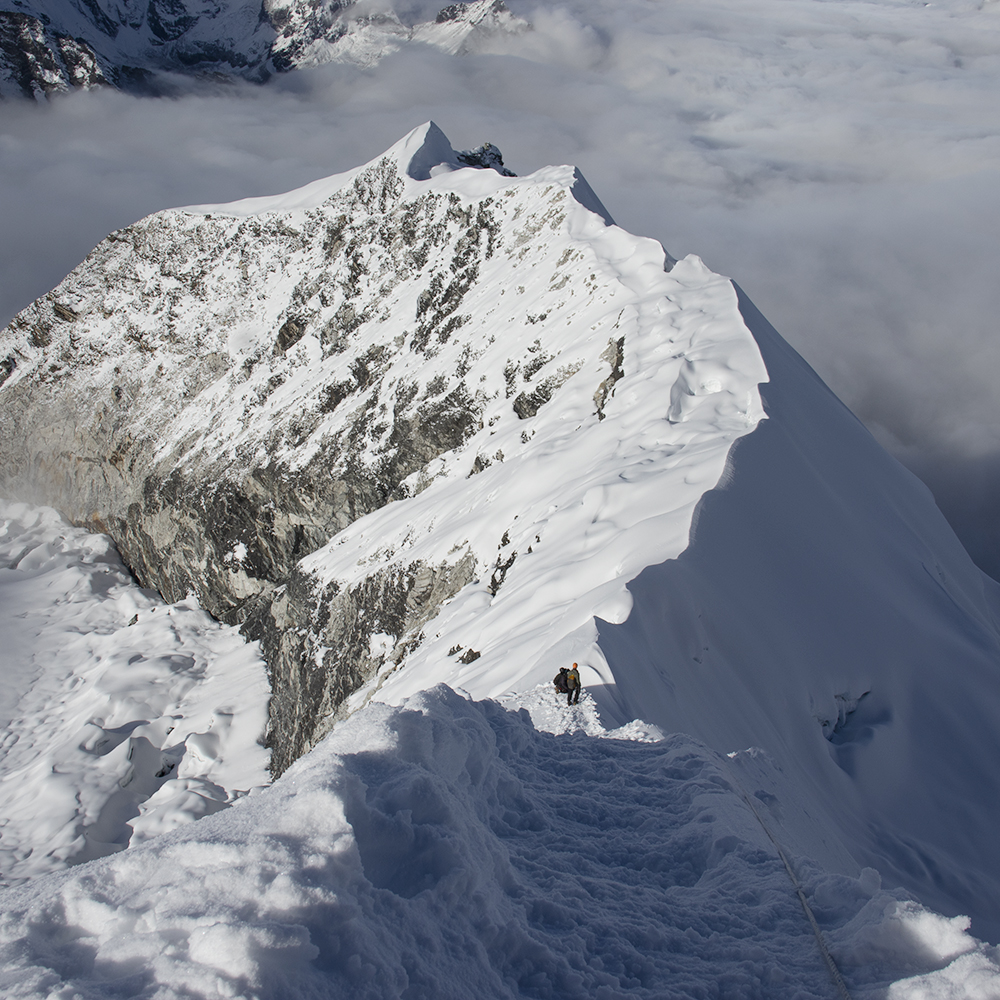 There are few crevasses where Nepal Mountaineering Association has placed 5 meter long aluminium ladder. The trail is okay and there is enough space in the top. The best thing to do once you are at the top of the mountain is to call your loved ones and share the achievement!